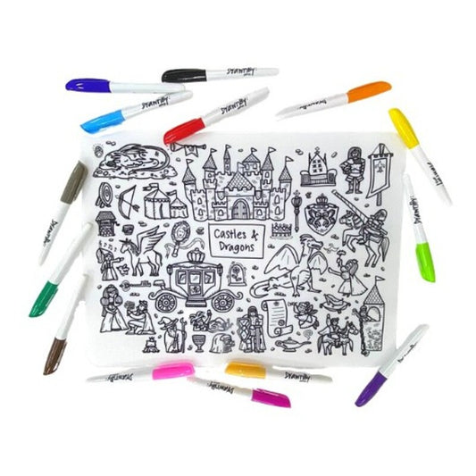 Castles & Dragons Washable Silicone Colouring Mat + 14pcs Markers Set