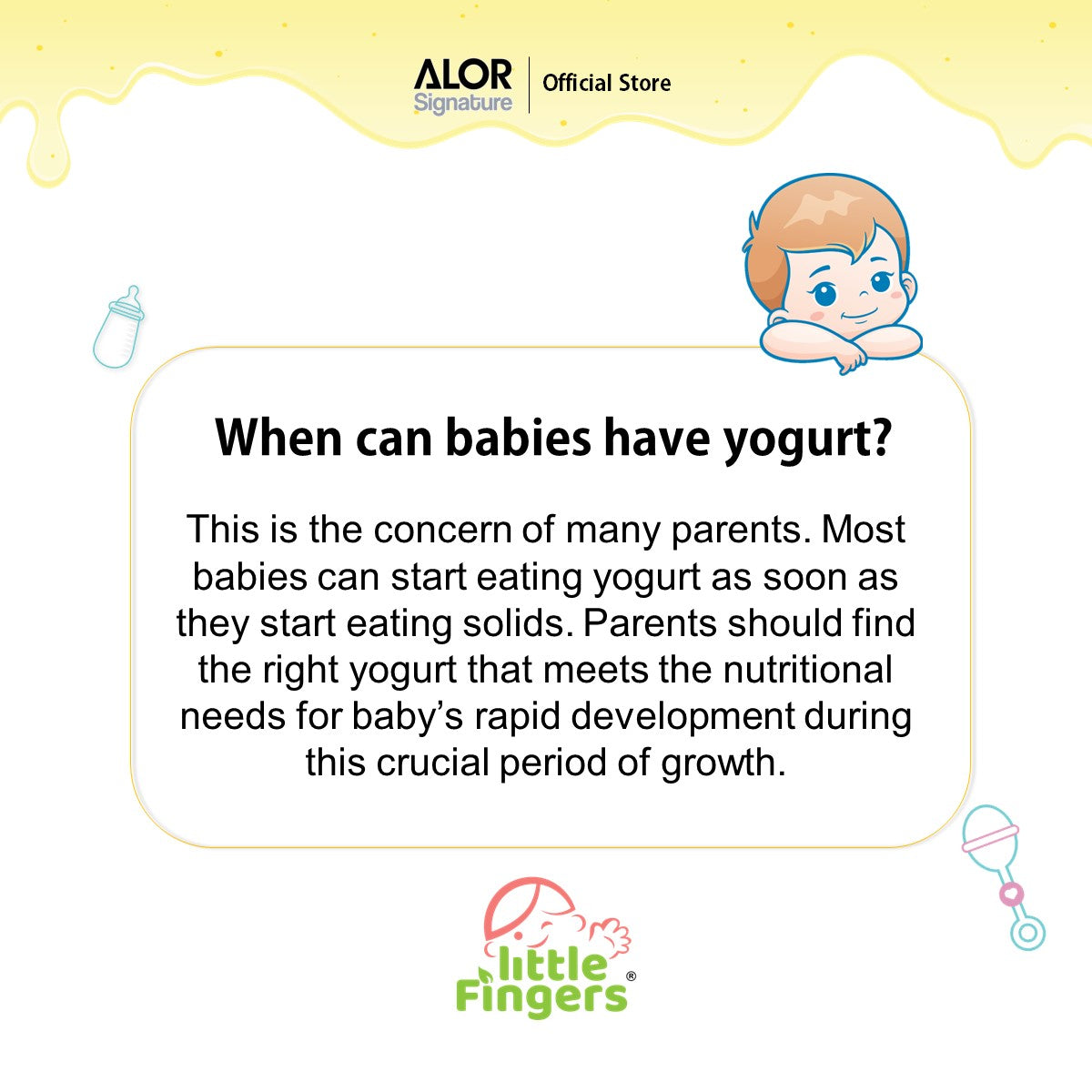 - Little Fingers yogurt melts are ideal for babies 10 months and above.