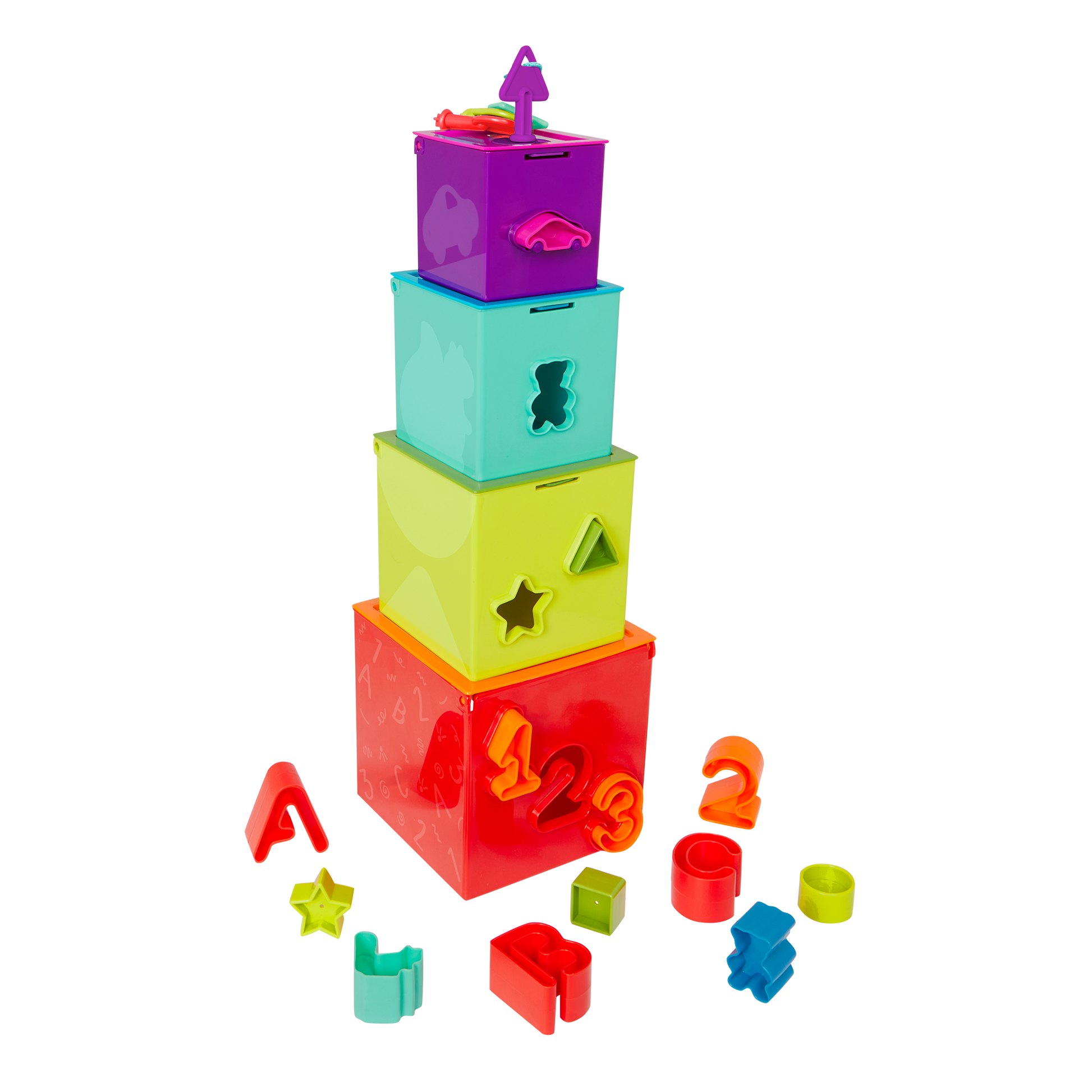 Unlock loads of learning, from 1-2-3 to A-B-C! Battat’s Lock & Learn Activity Cubes are ready for fun on all fronts, and it starts with unpacking the 4 nesting cubes. Kiddos will love stacking the colorful cubes any which way to build a tower – then the learning can start! 13 sorting numbers, letters, and shapes will challenge kids’ matching skills and improve their fine-motor function as they fit them into the cubes. Once the sorting is done, it’s time for a puzzle! Kiddos will have to use the color-coded keyring to match the correct key for each cube. Unlock the cube and the fun can start all over again! Made of worry-free and durable materials, all Battat products meet or exceed EU, U. S. and Canadian safety standards.