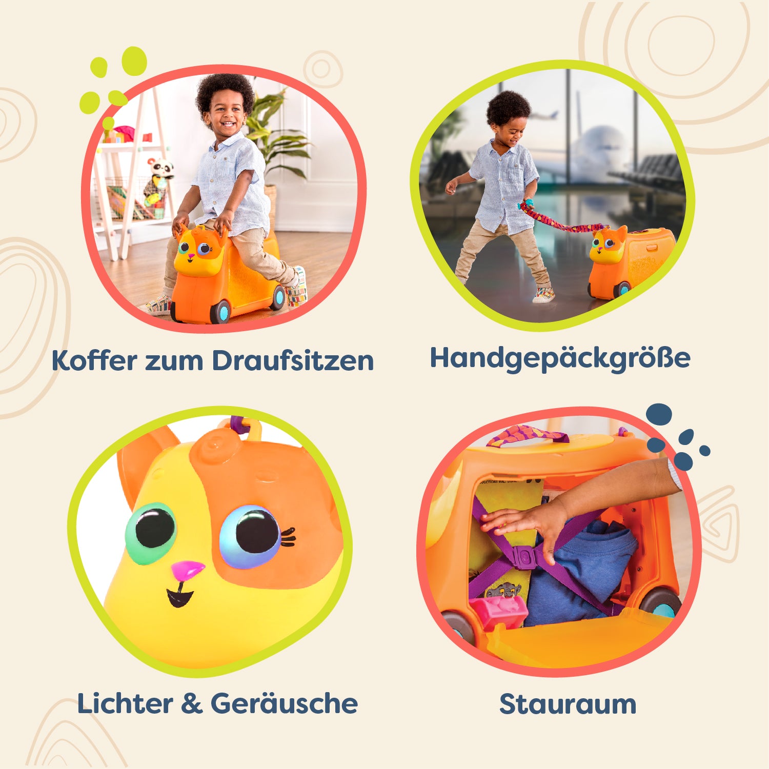 - Ride-On Suitcase: A lightweight and sturdy ride-on toy that can double as a carry-on sized suitcase!