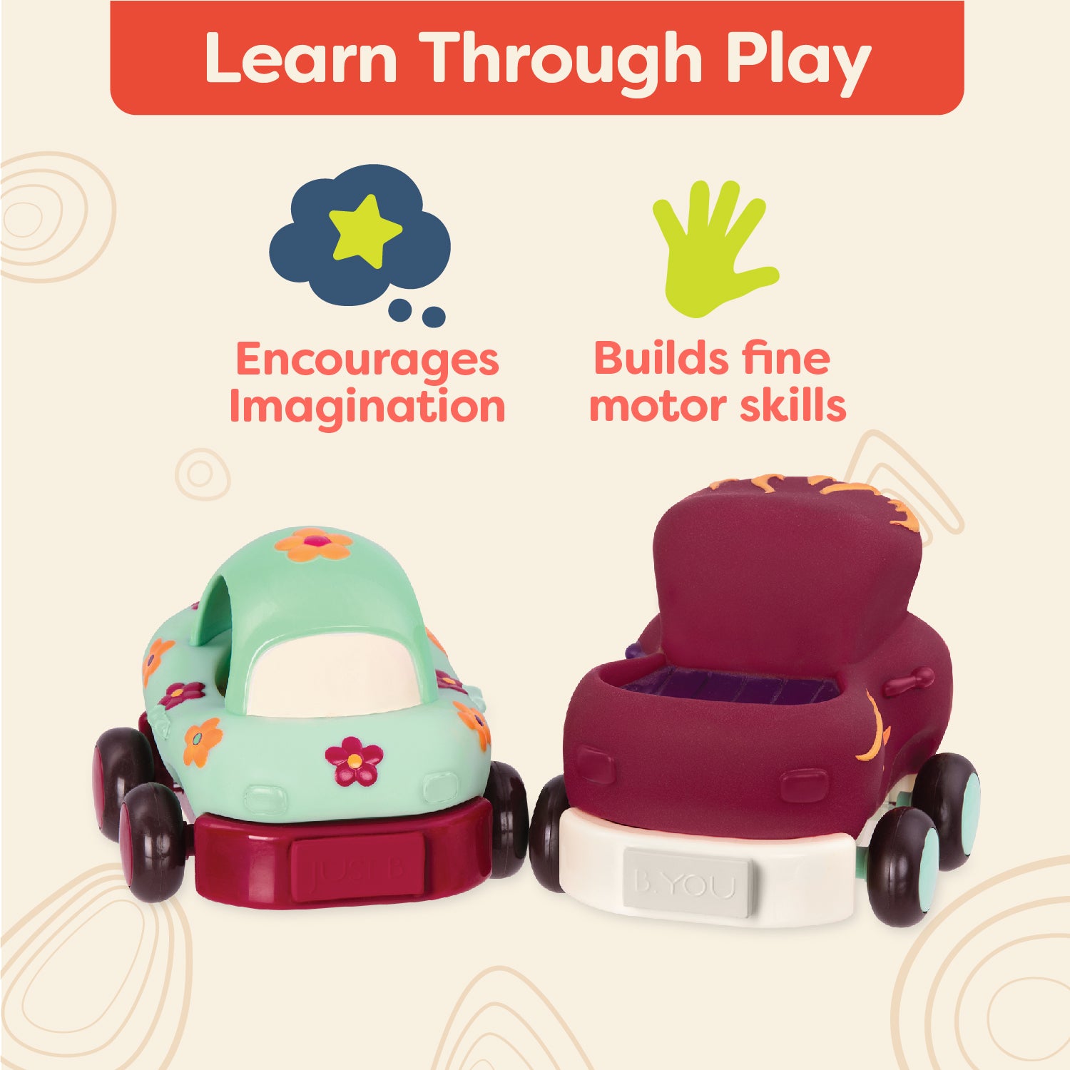 - Developmental Toys: Playing with the tiny hands-friendly Wheeee-ls improves auditory and motor skills.