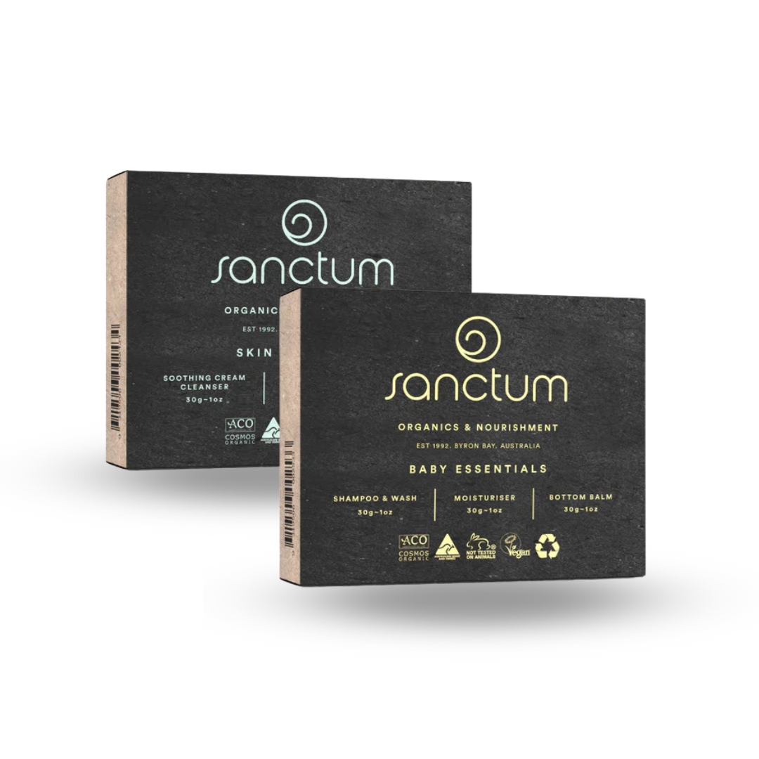 Discover the perfect organic skincare duo for both baby and parent with the Sanctum Organics Baby Essentials 3-in-1 + Skin Essentials 3-in-1 Bundle.