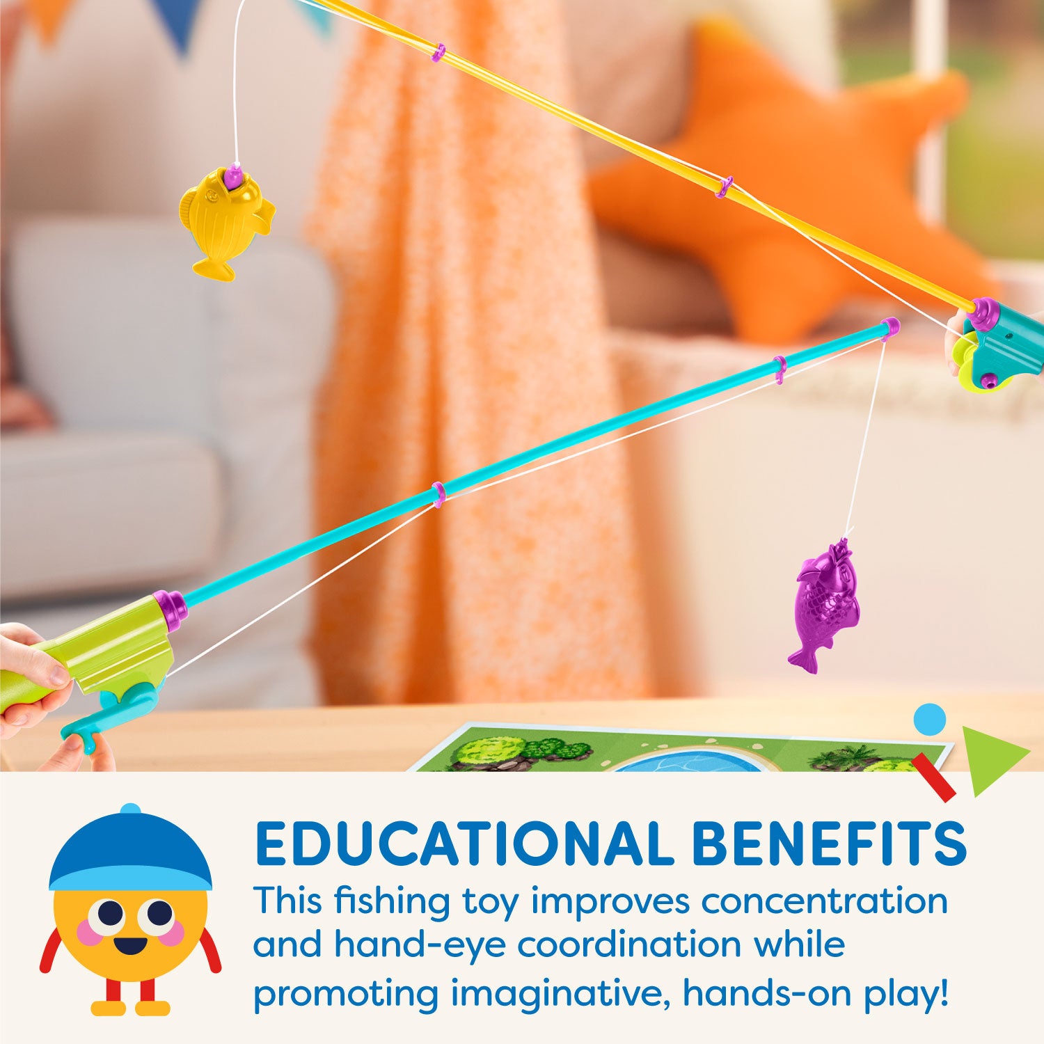 - 2 toddler fishing rods and 4 little fish