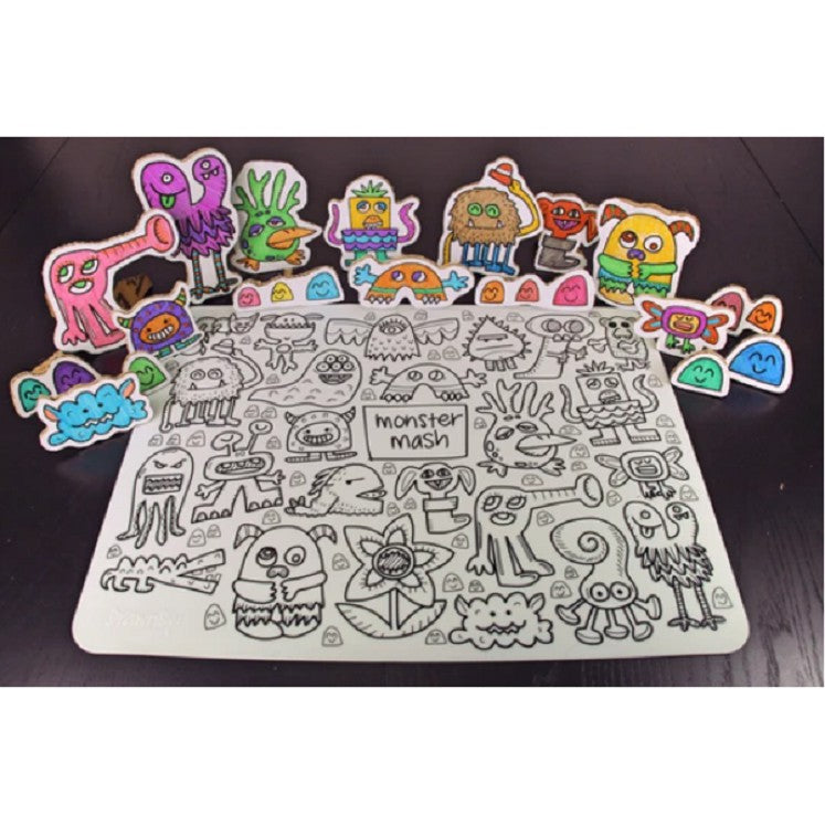 Monster Mash Washable Silicone Colouring Mat + 14pcs Markers Set