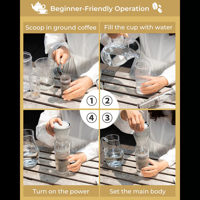 Smart, precise and puts you in control. Slow down for just a few minutes and make this the ritual that starts your day. EPEIOS Electric Cold Brew Coffee Maker, the latest model of EPEIOS "HummingBird" series lets you brew aromatic coffee full of the complex flavor with every brew.