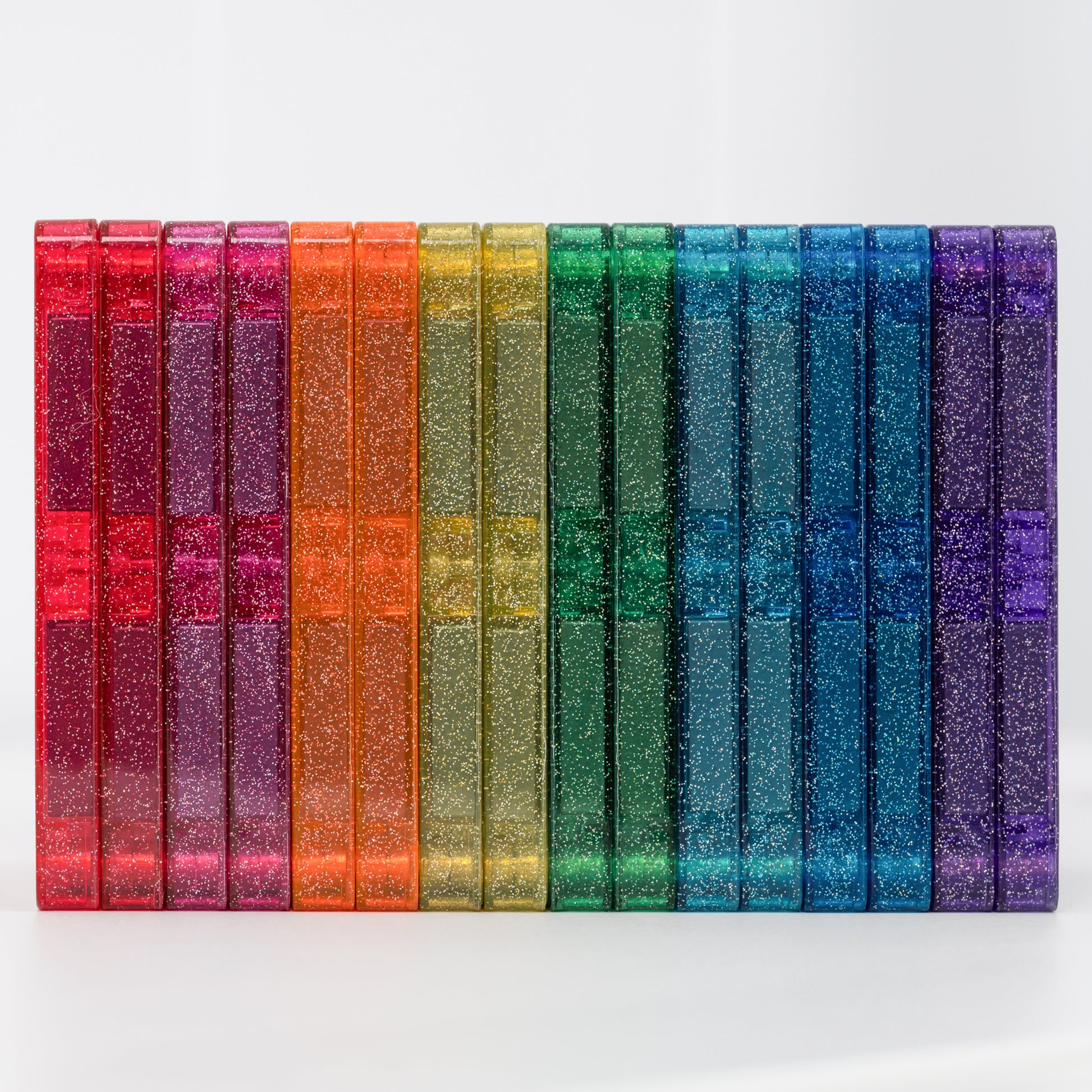 Designed for big imaginations and fairytale explorers, our stunning glitter tiles in signature pastel and vibrant rainbow colours add a touch of magic to every build. Featuring squares, plus a mix of isosceles and equilateral triangles all bursting with multi-coloured sparkles, this open-ended pack is perfect for building shimmering castles, towers, bridges, animals and so much more!