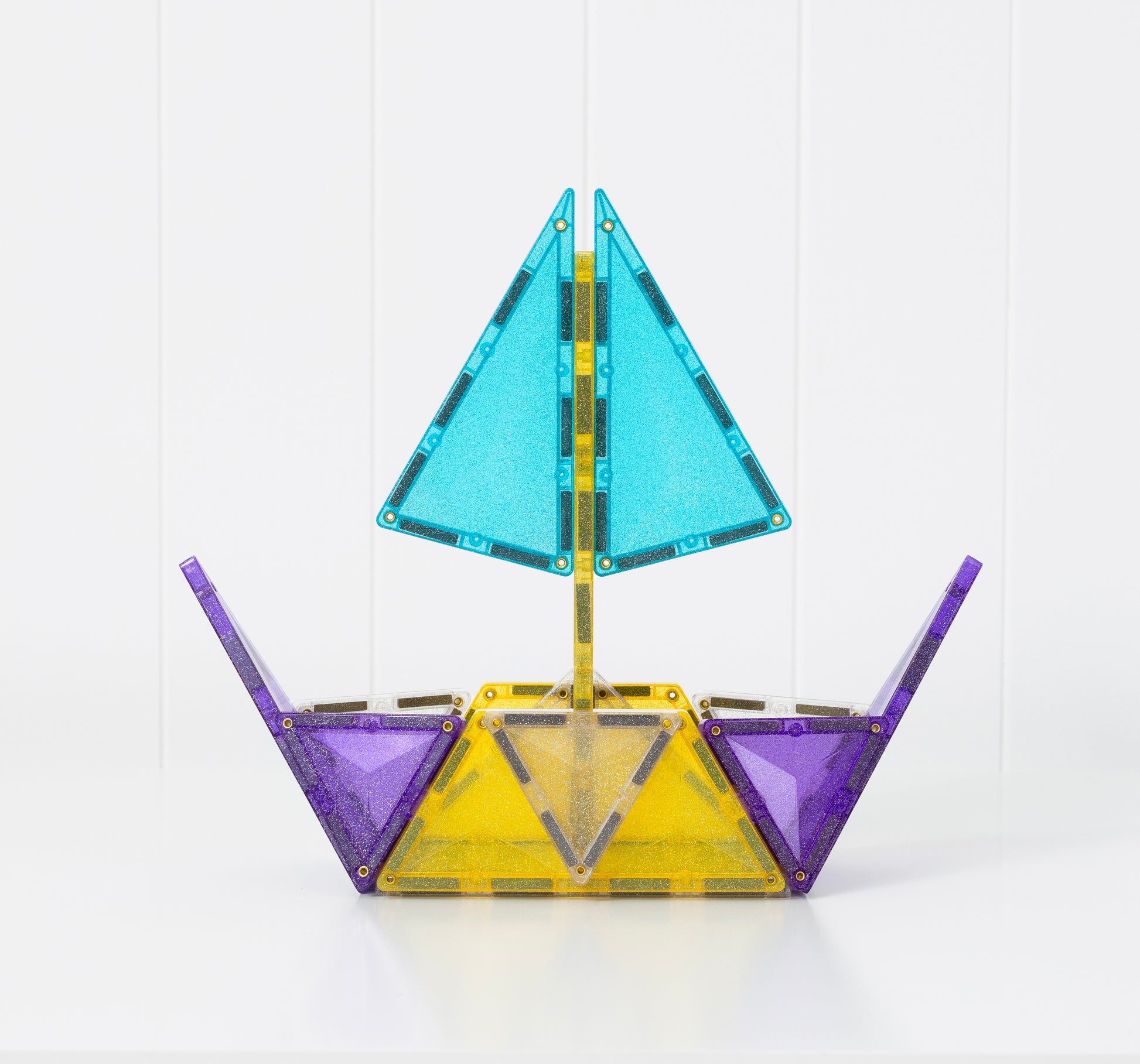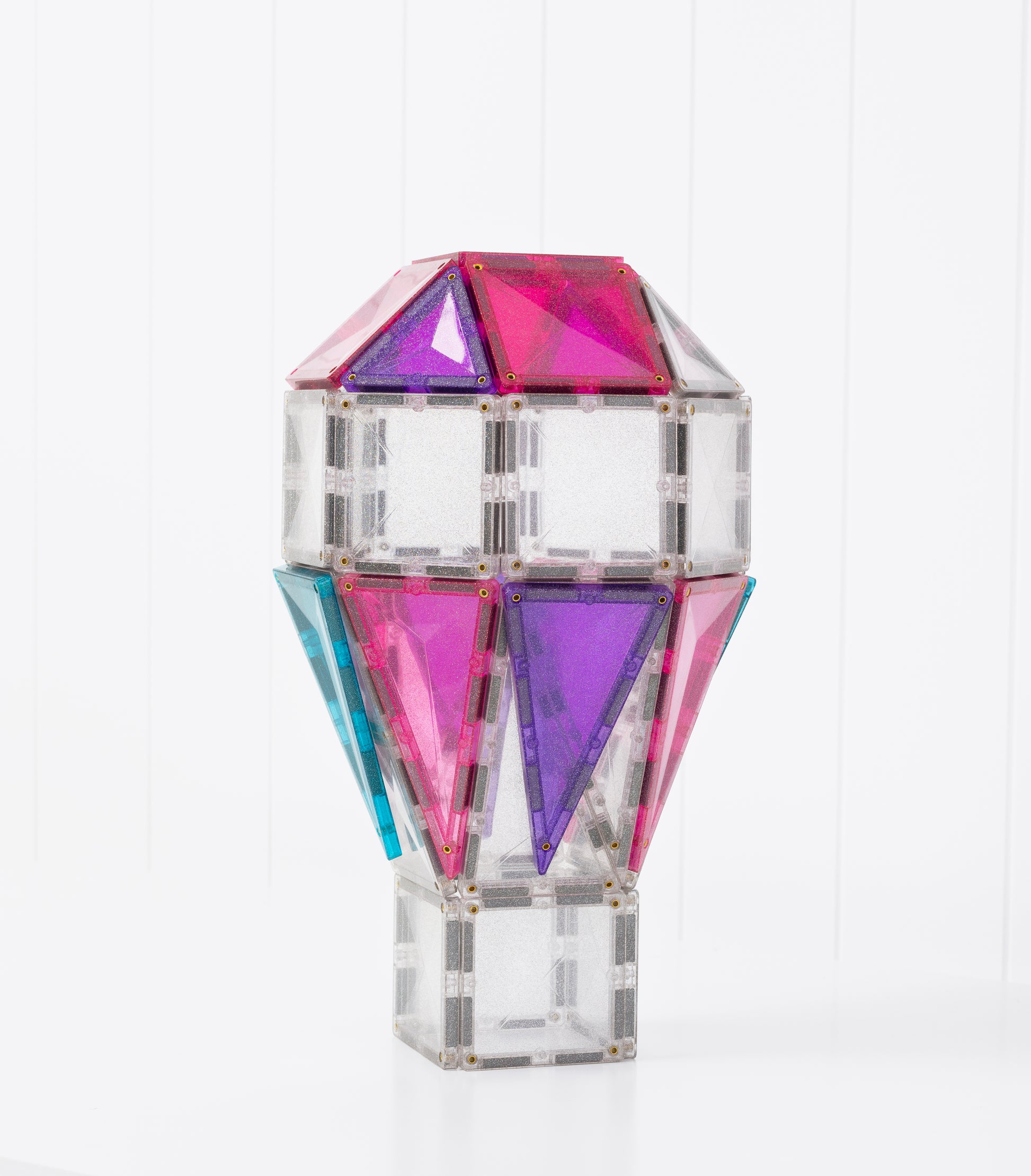 Designed for the unicorn lovers, fantasy dreamers and creative explorers, this pack is filled with delightful play possibilities. Featuring a stunning combination of glitter magnetic tiles in dazzling clear and vibrant bright colours of pink, yellow, teal and purple, plus a thoughtful selection of shapes in squares, hexagons, rectangles, triangles and trapezoids to bring your sparkly unicorn creation to life!