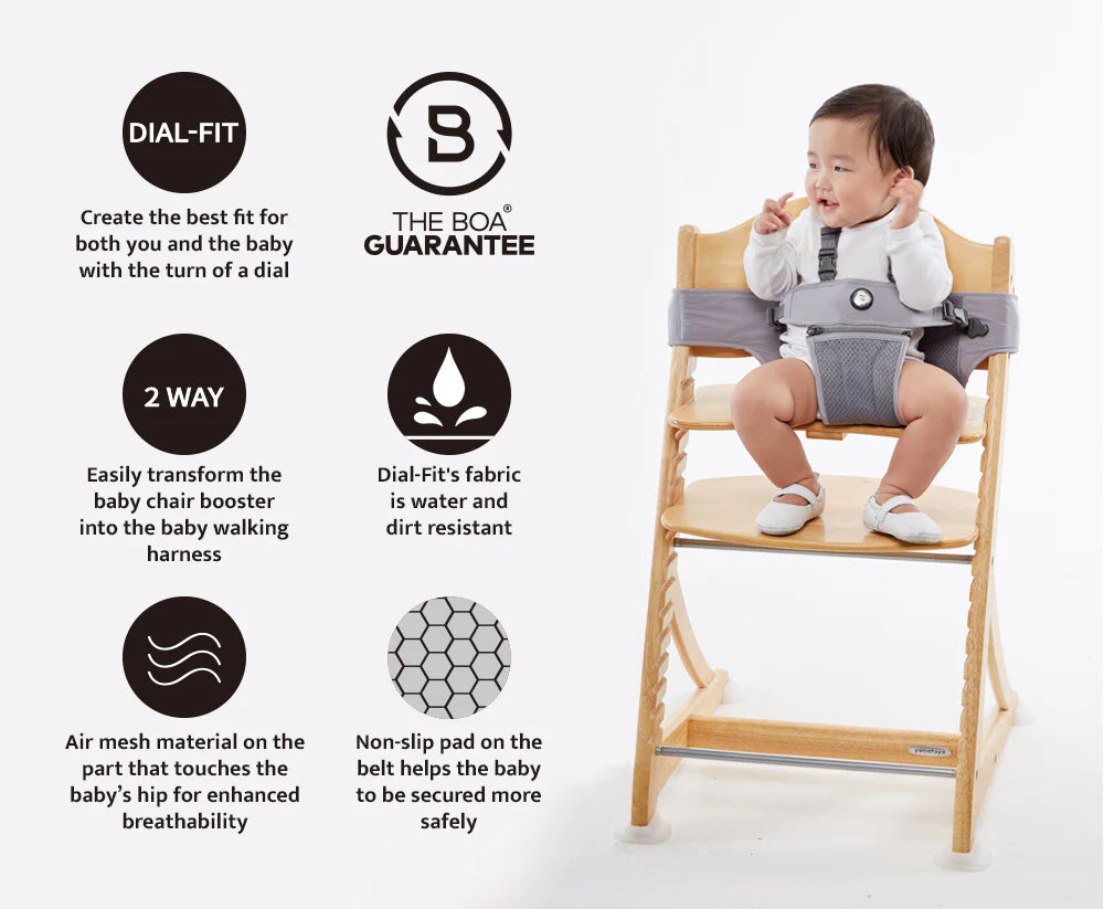 Dial-Fit BOA 2 Ways Portable Baby Chair Booster and Harness Safety Strap