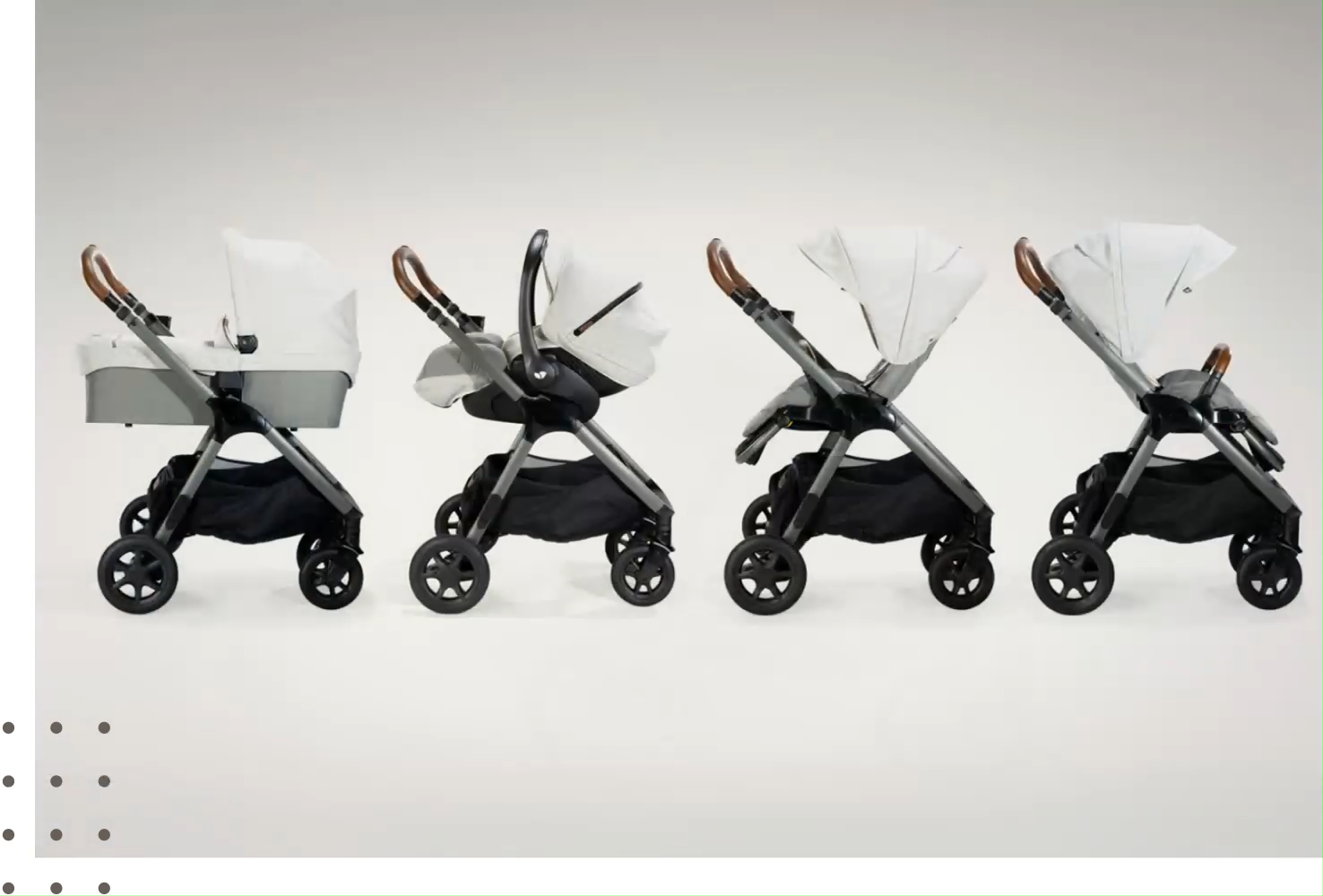 Carry cot, car cot, and infant carrier sold separately.