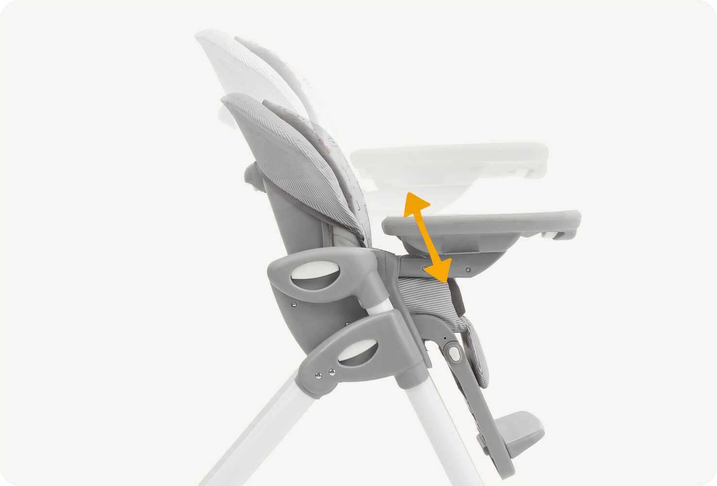 Just like your little one, the Mimzy Recline highchair grows and changes quickly. Adjust the height 7 positions, 5 tilt positions and 3 footrest heights to boot, so your child will always sit comfortably as they grow.