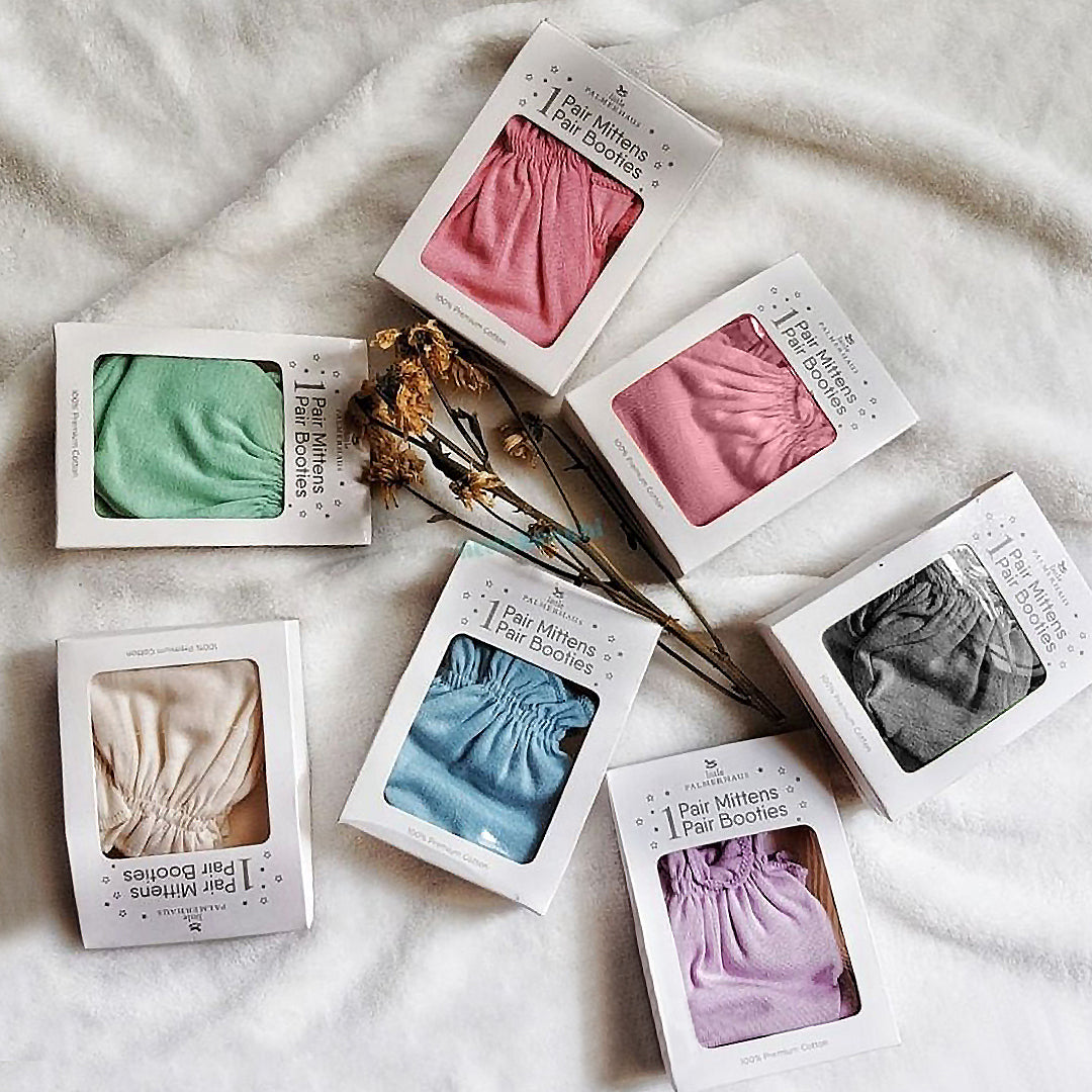 - Little Palmerhaus Mittens And Booties - 1 box contains: 1 set of gloves and 1 set of baby foot gloves