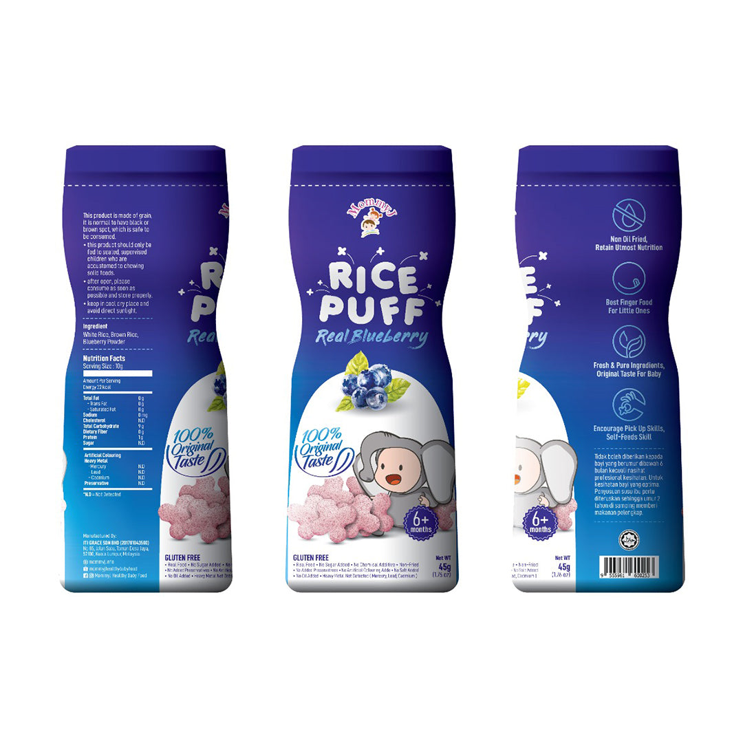- MommyJ Rice Puffs are mixed with pure natural fruits that are rich in vitamins and calcium, which help promote the development of children.