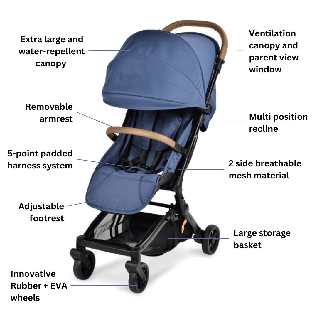 Designed for city strolls and for travelling. It can be hand-carried like a bag and compacted for easy storage, perfect for active families. Suitable from birth to toddler.