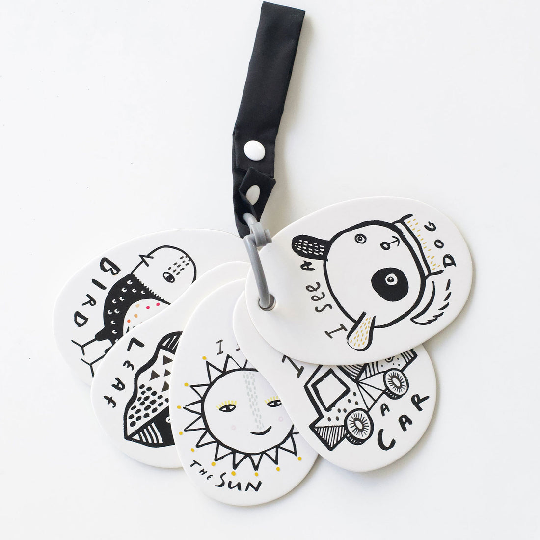 These five beautifully illustrated cards are super sturdy and held together with a ring and strap that connects to your stroller or bag. Easy to take on a trip but not easy to lose. Take your baby on a fun exploration the Wee Gallery way.