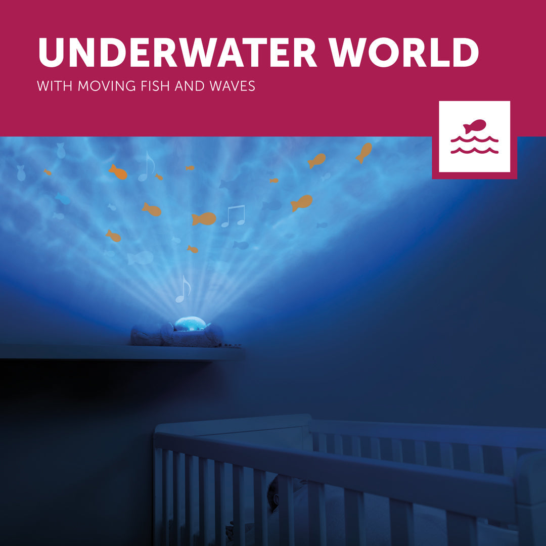 - Life-like underwater world. Turn your little one’s room into a magical underwater world, with moving waves and fish swimming around the room, while listening to relaxing ocean sounds.
