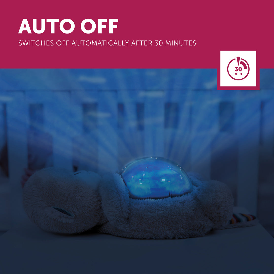 - 3 Step sleep program Helps your little one to fall asleep by lowering the animation in 3 steps. The projector will automatically shut off after 30 minutes.