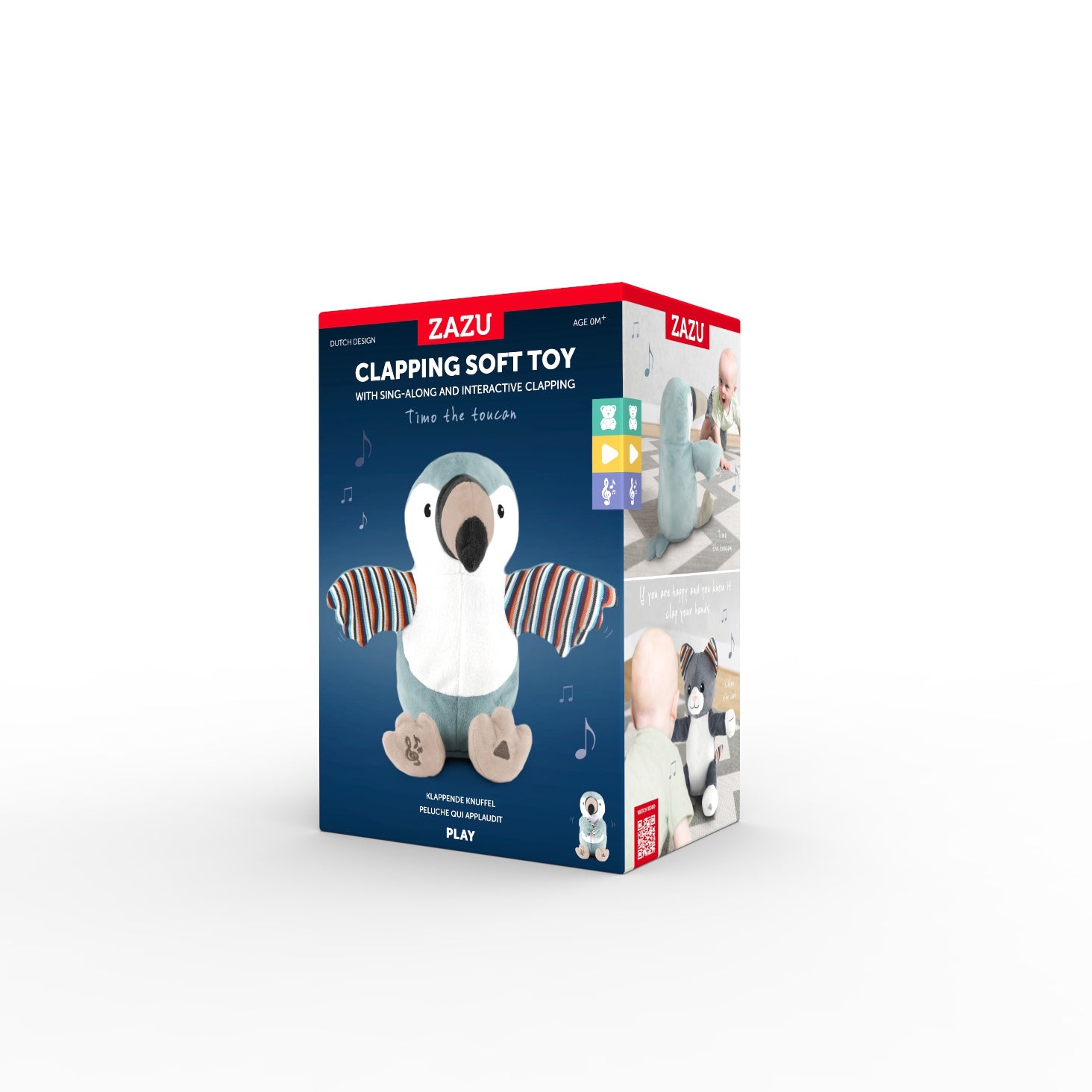 - Timo the Toucan is a friendly soft toy with clapping hands and sound. Your little one will try to play and sing along with this cute plush.