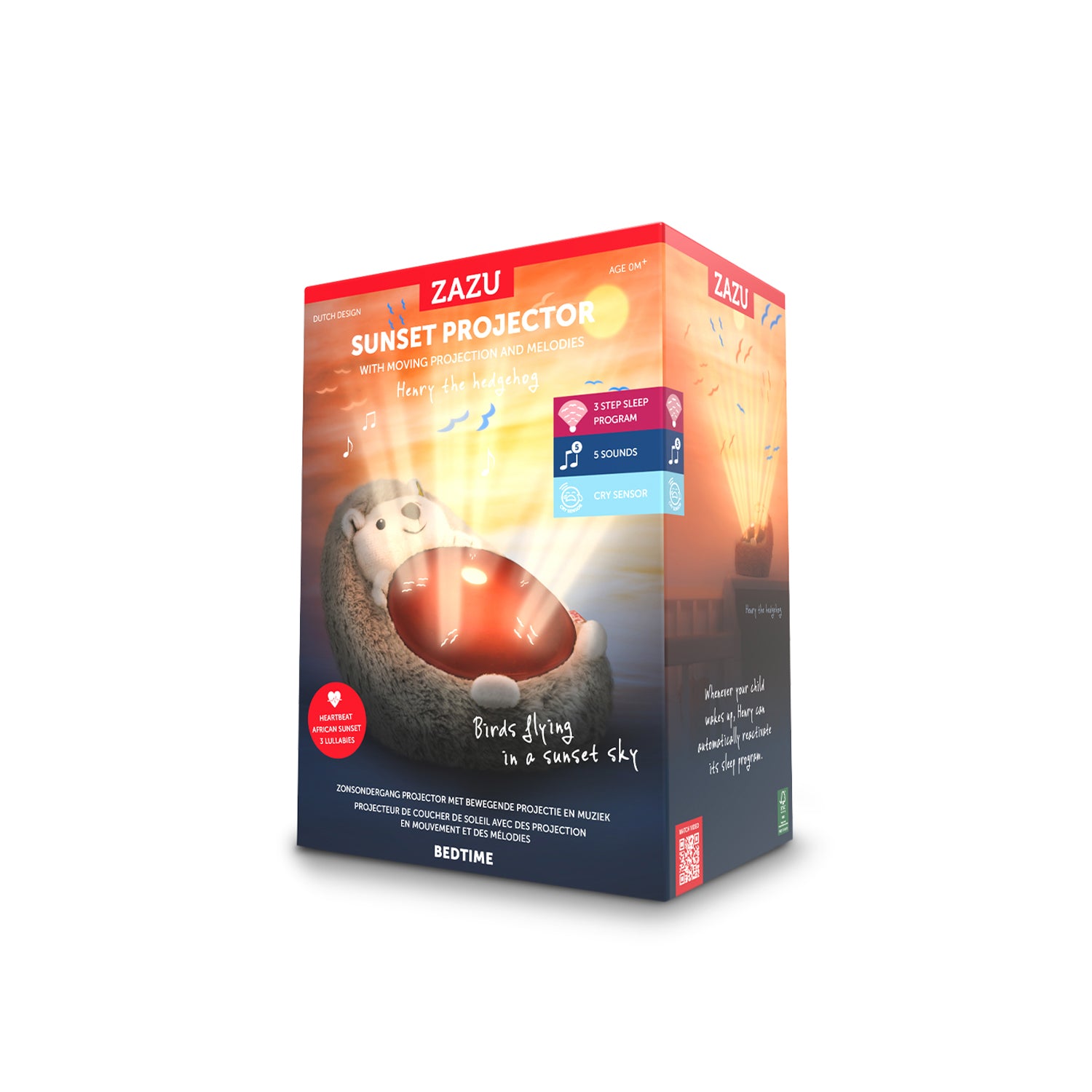 - Sunset Sky Projects a magical orange sunset sky with birds flying around the room. The soft orange light supports the production of the sleeping hormone melatonine.